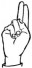 На ћирилици написано ИРИНА ШУЈДОВИЋ састоји се из 13 слова [?]. Исписано ћириличном једноручном азбуком за глувонеме: